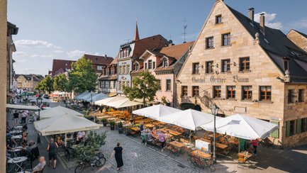 Inmitten historischer Fassaden und denkmalgeschützter Häuser reiht sich in der Gustavstraße ein Lokal ans nächste: traditionelle Kneipen, moderne Bars und Restaurants mit fränkischer sowie internationaler Küche. Ob für ein ausgedehntes Dinner, einen entspannten Feierabenddrink oder einfach zum Leute schauen – hier schlägt das kulinarische Herz Fürths.